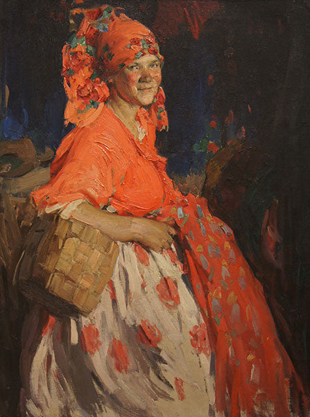 About the time Serov first started to acquire some notoriety (1885), his style was considered very new; it was highly influenced by the Impressionists and what was coming out of France at the time. Serov used a technique called color blocking. He would begin a portrait by creating the overall shape of the figure first and then, with one color, he filled in that shape. He moved around the canvas creating the overall shape of each object and filling it in with one color. This technique was very similar to what Gauguin was doing at the time called Synthetism. Gauguin’s Post-Impressionistic style flattened form creating two-dimensional flat patterns. Serov was always searching for the right colors to show the true personality of the person he was painting. Though Serov’s brushwork is influenced by the French Impressionist painters he never completely embraced their use of color. Instead we see more gray or silvery tones in his work, influenced by Anders Zorn (1860-1920), a Swedish painter. The “Zornish” manner first appeared in Russian painting when Serov and his friend Konstantin Korovin took a trip together to northern Russia to paint. By the mid-1890s the technique had become very popular with the Russian painters, especially those living in St. Petersburg. The Moscow painters tended toward golden ochers and rich reds. With Serov’s work you will see a use of both Zorn’s gray umbers and the Muscovite painters' golden ochers. In many of his portraits we see what I call Russian green, which is a mixture of raw umber, yellow ocher and cerulean blue.