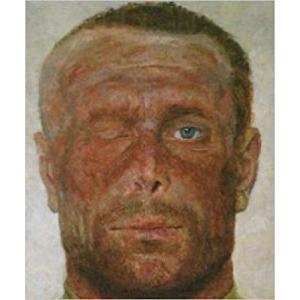 The exhibition opens with the painting Traces of War (1963-1964, Russian Museum). Among the most poignant works in the "Burnt by the Fire of War" cycle, this work, so dear to Korzhev's own heart, nonetheless made him the target of much criticism. "Traces of War" can hardly be called a portrait in the normal sense: it is rather, the artist suggests, a collective image - the "face of war". The disfigured face of a wounded soldier is shown en face against a light, neutral background: a monumental version of a passport photograph. The painter's view is akin to that of the camera lens, recording visible reality with impartial precision. Yet Korzhev here is far from an indifferent observer, who simply relates what he has observed. The artist's choice of hero, the way the face is enlarged, the grief and sober gravity of the situation define Korzhev's true feelings towards his subject. The soldier's disfigured eye that so repelled some critics, prompting accusations of the inappropriate portrayal of a monumental hero, is rendered clearly and convincingly, without excessive physiological detail. Later, Korzhev expressed thoughts on what is and is not permissible in art: "I think we should not overwhelm people with despair, fear, terror and ugliness. Such themes aren't for the arts. Affirmation of courage, beauty and kindness, even through the depiction of terrible scenes, is the main principle of the arts."[2]