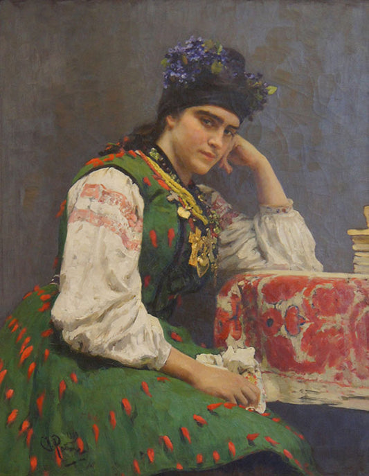 Ilya Repin was a truly a self-made man. Russia during the time of Ilya Repin's birth was in a caste system where its citizens were rated by class. His father, Efim Vasilevich (1804-1894), was a military settler which was in a category similar to a state-owned peasant. Thus upon his birth, Ilya was automatically registered as a military settler and though a notch above a serf, he was legally bound to live and work according to the demands of the state. Ilya was born in the outskirts of Chuguev in Little Russia which today is known as the Ukraine. This was a very rural area with modest homes and unpaved streets. During the time Repin's father was away serving in the army, the family lived in poverty. There was a lack of a primary school which denied the children any chance for advancement. However, Repin's mother, Tatiana Stepanovna (?-1879), who had taught herself to read, organized classes teaching her son and other children in their area. Since Repin's father was often away from home, his mother became his primary influence. Tatiana was deeply religious and passed on the teaching of the Russian Orthodox Church to her children. Later in life Repin would often compare the inspiration for art akin to his religious beliefs.