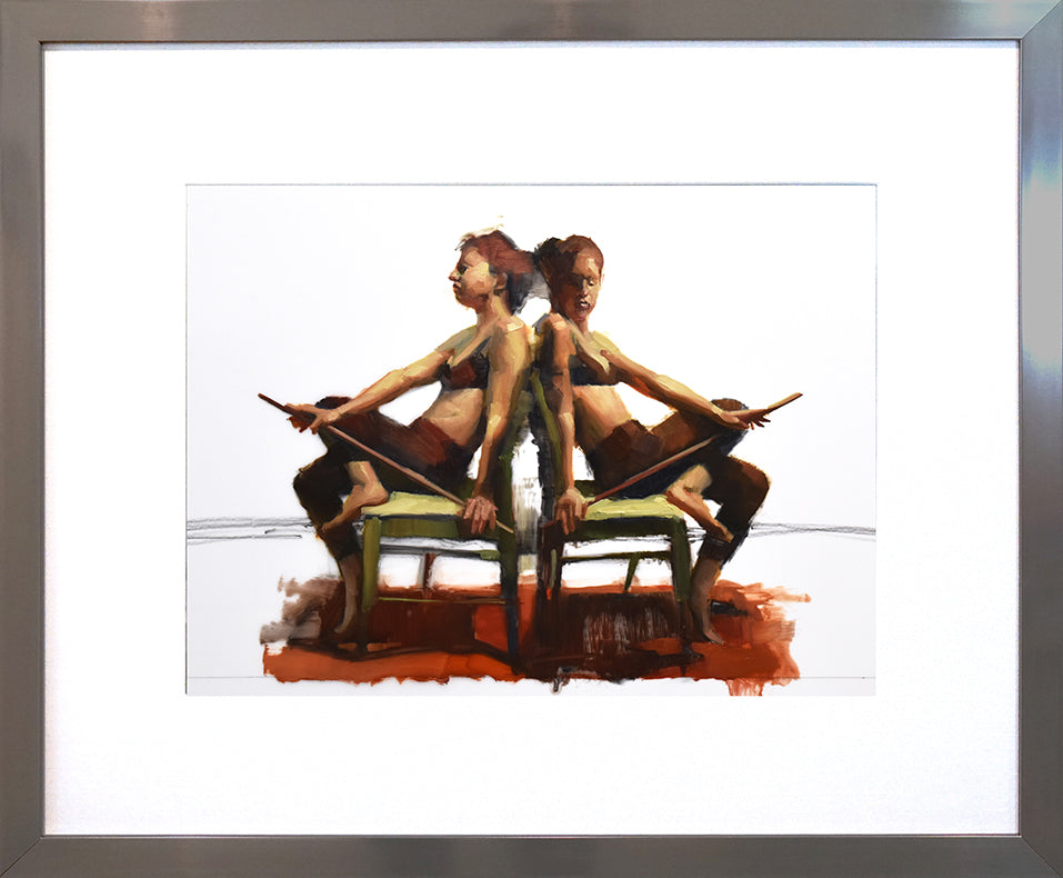 Artwork comes framed in contemporary silver frame with a white matt and placed under non-glare plexiglass.